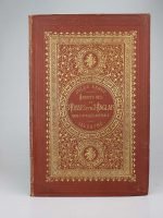 Jules Verne : Aventures de 3 russes et de 3 anglais. Paris, Hetzel, sd, (1872). Un volume grand in-8° relié pleine percaline chagrinée d'éditeur à décor, cartonnage aux bouquets de roses du troisième type sur fond havane. Rousseurs intenses. Le cartonnage est très frais. Très bel exemplaire de premier tirage.