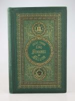 Cinq semaines en ballon. Paris, Hetzel, sd, (1875, catalogue idoine). Un volume grand in-8° relié pleine percaline d'éditeur à décor, cartonnage aux initiales sur fond vert. Quelques rousseurs, quelques retouches et marques du temps. Ors frais. Fer doré "EW" au centre du second plat. Assez bel exemplaire.