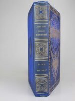 Jules Verne : Hector Servadac. Paris, Hetzel, Sd. (1877, catalogue J). Un volume grand in-8 relié pleine percaline d'éditeur, cartonnage au monde solaire sur fond bleu. Quelques rousseurs, plutôt peu pour la période. Cartonnage de toute fraîcheur. Très bel exemplaire de premier tirage. L'azur et l'or! alliance royale!