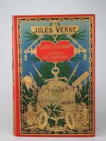 Jules Verne : Claudius Bombarnac & Le château des Carpathes. Paris, Hetzel, sd, (1901-2). Un volume grand in-8° relié pleine percaline d'éditeur à décor, cartonnage au globe doré. Intérieur blanc et lumineux. Très beau cartonnage, très bel exemplaire.