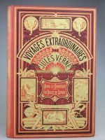 Robur le conquérant & Le billet de loterie. Paris, Hetzel, 1886, catalogue DF. Un volume grand in-8° relié pleine percaline d'éditeur à décor, cartonnage aux deux éléphants sur fond rouge. Rares rousseurs. Exlibris André Lavaÿsse & sa signature en page de titre. Dos un poil plus pâle que le plat. Très bel exemplaire de premier tirage.