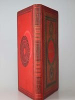 Jules Verne : Sans dessus dessous. Paris, Hetzel, sd, (1889, catalogue EX). Un volume grand in-8° relié pleine percaline d'éditeur à décor, cartonnage aux initiales sur fond rouge. Ors du plat à peine oxydés ce qui est rare pour cet ouvrage. infimes rousseurs. Cartonnage frais. Très bel exemplaire de premier tirage.