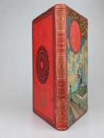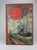 Jules Verne : Un billet de loterie. Paris, Hetzel, sd, (1895, catalogue D). Un volume grand in-8° relié pleine percaline d'éditeur à décor, cartonnage au steamer, titre dans un macaron rouge. Des rousseurs, parfois importantes. Quelques retouches, nombreuses marques du temps. Bon exemplaire.