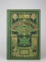 Jules Verne : Un capitaine de quinze ans. Paris, Hetzel, sd (1878 ou un poil après, pas de catalogue). Un volume grand in-8° relié pleine percaline d'éditeur à décor, cartonnage aux deux éléphants sur fond vert clair. Des rousseurs régulières, parfois importantes. Le cartonnage est très frais. Couleur rare. Très bel exemplaire dont l'absence de catalogue ne permet pas la qualification de premier tirage, même si j'en suis persuadé.